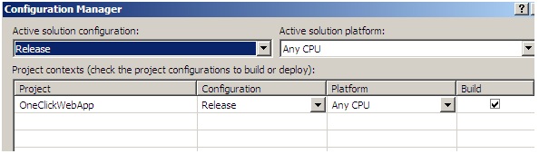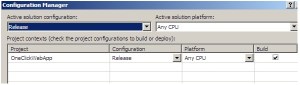 Ok so now you are ready to do the actual deployment. First make sure that the “Release” build configuration for your project is selected as shown below.