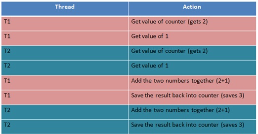 So as a result, one step increment was overlooked due to the fact that two threads were granted access to the variable counter at the same time. The above scenario occurs many times and you will get the final value wrong as we did when we ran the program. This is classical case of Data Race.