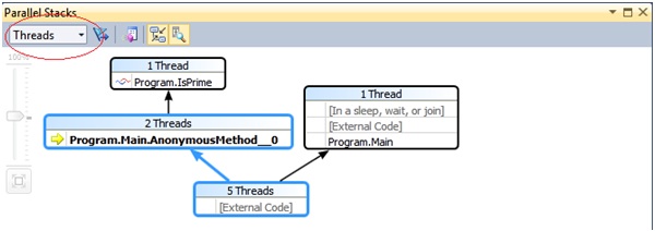 Another useful window is the Parallel Stacks window (Debug Menu  Windows  Parallel Stacks):