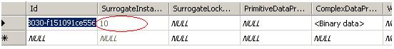 Now run the client. Once the service sends the response back to the client (recall – no persistence on send here), it enters a delay shape for 1 minute. Meanwhile we have configured to persist the WF after 5 seconds. So wait 5 seconds and open table “InstancesTable”; just like in Part 1 you will see the WF state persisted: