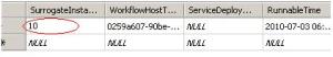 However, now we have also configured the WF to unload after 20 seconds. So after an additional 15 seconds, this time open table “RunnableInstancesTable” and you will see one record corresponding to the same workflow. Why the “RunnableInstancesTable” table? Because this time the WF is not only persisted, but also is unloaded meaning that it is ready to be loaded again and continue execution: