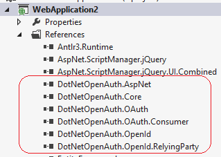 If you examine the code in the VS 2012 project you just created, you will see that the namespace used is DotNetOpenAuth.AspNet. This is Microsoft’s wrapper around the original DotNetOpenAuth API.