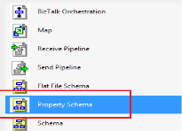 Property Fields, require first that you create a Property Schema. Recall from the discussion around schemas, that a Property Schema is a simplified version of an XML Schema. In this schema, you add the fields that you want to get promoted. In the next steps, you will link this field with an Xpath expression of the related field from the XML schema: