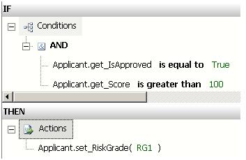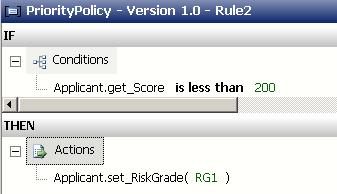 Now, create a new rule – Rule2 – which sets the RiskGrade to “RG1” if Score is less than 200, as follows: