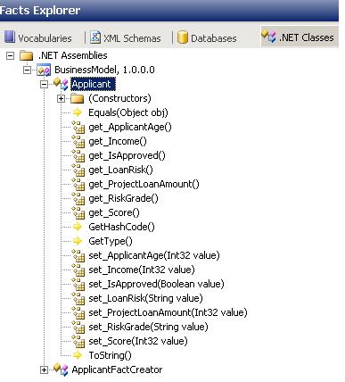 We have created our business object which represents the applicant. For testing our rules, we have also created a fact creator class whose sole purpose is to allow us to test our rules against a true applicant (fact instance) directly from the composer UI. This is important because if we deploy the policy and test it directly in our program, we won’t be able to edit it again. Next, we installed the business object DLL in the GAC because it needs to be consumed by the BRE.